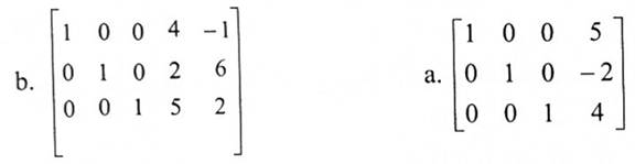 نفرض أن المصفوفات الآتية هي بالصيغة المدرجة الصفية المختزنة المكافئة لمصفوفات ممتدة. اوجد نظام المعادلات الخطية المقابلة لكل منهما.