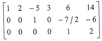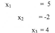 وبمجرد النظر لهذه النظام، نحصل على الحل x1 = 5 , x3 = 4 , x2 = -2 أما النظام المقابل للصيغة في b فهو: