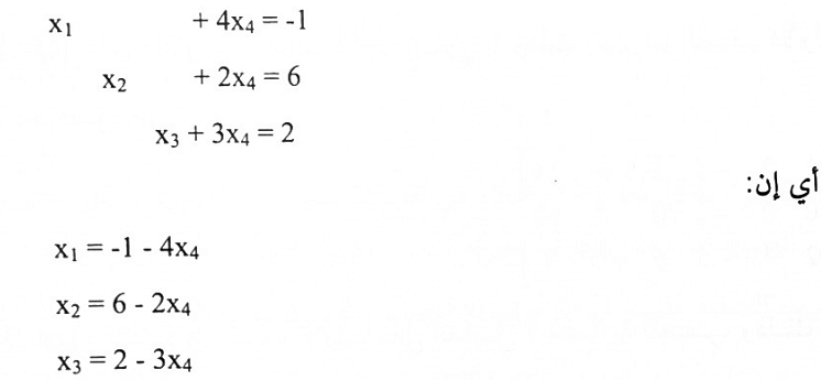 وبفرض x4 = t (x4 يسمى المتغير الحر و t يسمى المتغير الوسيط).