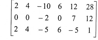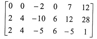 1. لكي نجعل العنصر الأول في العمود الأول لا يساوي صفر نبادل الصف الأول بأي صف آخر. فمثلاً نبادل الصف الأول مع الصف الثاني وسنحصل على: