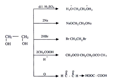 وفيما يلي ملخصاً لبعض تفاعلات جليكول ايثلين :