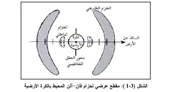 للحقل المغناطيسي الأرضي، تأثير كبير على الشوارد في طبقات الغلاف الجوي العليا، حيث كان إظهار هذا التأثير جلياً فيما يعرف بحزام فان آلن Van Allen Belt ، والمكتشف في عام 1958. يتألف هذا الحزام، والموضح بالشكل (3-1)، من حزامين، أحدهما داخلي Inner Belt مؤلف من بروتونات، والثاني خارجي Outer Belt مؤلف من إلكترونات، يطوقان الكرة الأرضية ويكون محور الحقل المغناطيسي للكرة الأرضية منطبق على المحور المشترك للحزامين.