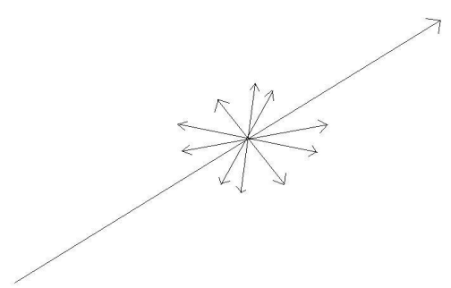 نعود الآن إلى البايون المتعادل الذي ينحل إلى فوتونين لهما كمية دوران مغزلي متعاكسة، إن التجارب التي أجريت لاختبار مفارقة أ. ب. ر، لم تعتمد على كمية الدوران المغزلي للفوتونات، بل اعتمدت على كمية أخرى تسمى الاستقطاب polarization. يمكن وصف الاستقطاب بالنسبة للضوء باتجاه المجال الكهربائي في الفضاء. فعندما ينتشر الضوء (موجات كهرومغناطيسية)، تكون خطوط المجال الكهربائي عمودية على اتجاه انتشاره في كل الاتجاهات، كما هو موضح بالشكل (2–6).