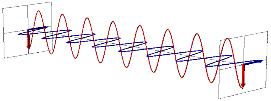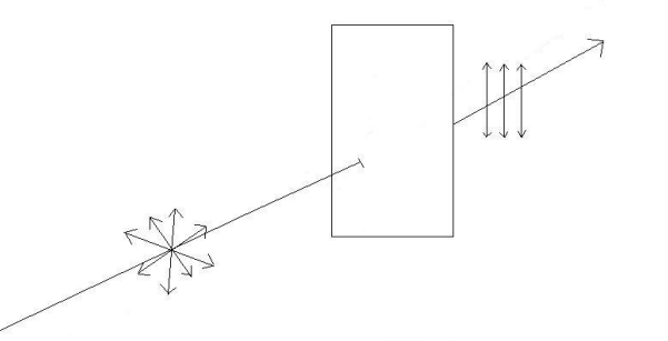 لكن إذا أردنا الحصول على خطوط مجال كهربائي تهتز وفق منحنى معين، نقوم بوضع ما يسمى (المقطب) polarizer. حيث يجعل هذا الأخير خطوط المجال الكهربائي تمر في منحنى خاص نقوم نحن بتحديده كما هو موضح بالشكل (3–6). هذا هو مبدأ عمل النظارات الشمسية.