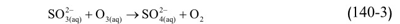 يعتقد أن التفاعل السابق يتم فعلياً بين الماء الأوكسجيني وشاردة كبريتيت الهدروجينية . HSO3، فتتشكل شاردة فوق هيدروكسي أحادي أوكسيد الكبريتي Peroxymonosulfurous التالية HOOSO2 كمرحلة وسطية بشكل مغاير، يؤكسد الأوزون O3 شاردة الكبريتيت . SO3(aq) ضمن قطيريات الماء أسرع بكثير من أكسدة