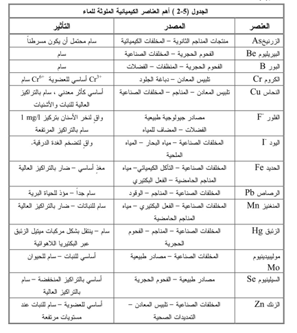 يلخص الجدول (2) أكثر المواد أهمية بين آثار العناصر الموجودة في المياه الطبيعية .