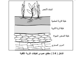 تتكون التربة المثالية من 5% مواد عضوية و 95% مواد لا عضوية، بعض أنواع التربة الناتجة عن نسيج نباتي نصف متفحم (الخُث) يمكن أن تحتوي أكثر من %95 مواد عضوية، إلا أن أغلب أنواع التربة تحتوي أقل من 1% مواد عضوية، تعرض نماذج التربة على شكل طبقات متميزة بازدياد العمق الشكل (8-2).