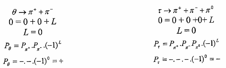 فكان الحل لهذه المشكلة هو أن التناظر لا تحفظ (تخرق) في التفاعل الضعيف (في درجات الحرارة الواطئة وبحالة الاستقطاب) ولذا اعتبرت الجسيمتان τ وθ عبارة عن جسيمة k0 لها طوران من التحلل: