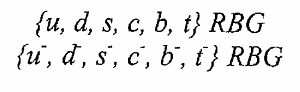 1– الكوارك يوجد على ثلاث صور تميزها الألوان الثلاثة الأحمر والأخضر والأزرق (RBG).
