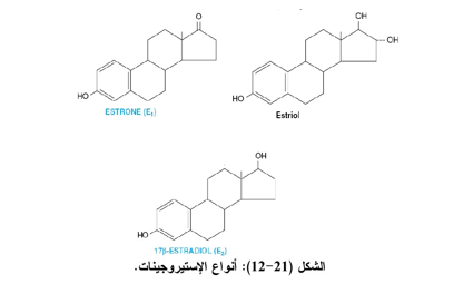 يكون الاستيروجينات على ثلاثة أنواع هي كالأتي (الشكل 21-12):
