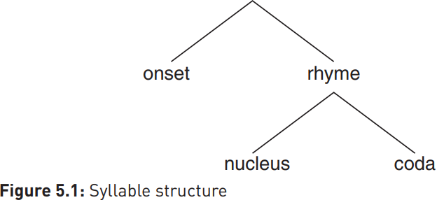 We have already seen evidence that syllable structure has important phonological consequences. This was notably the case for the liquid approximants /I/ and /r/ in English: allophonic variation for /l/ depends on position in the syllable, while /r/ is often deleted syllable-finally, but never syllable-initially. Cross-linguistic evidence suggests that syllables (conventionally represented by a lower case Greek sigma σ) have a hierarchical structure consisting of an onset and a rhyme: