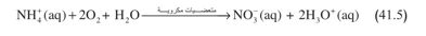 يتضمن الجدول 1.5 لائحة الأيونات الرئيسية الموجودة في المتساقطات والمعروفة جيداً. ووفقاً لما ذكرناه، تُمثل أيونات الصوديوم والبوتاسيوم والكالسيوم والمغنيزيوم أيونات موجبة لأسس قوية، وتمثل أيونات الكلور والنترات والكبريتات أيونات سالبة لحموض قوية. بذلك تكون تلك الأجناس جميعاً طبيعية بذاتها، ولذا فإن الأيونات الرئيسية الوحيدة التي تُخل بالتوازن الحمضي الأسسي للماء هي أيونات الأمونيوم الهدرونيوم . تُحدّد فعالية أيون الهدرونيوم طبعاً عامل حموضة المحلول مباشرة. ونظراً إلى أن الأمونيوم حمض ضعيف جداً (9.25 = apK ) ، وحتى بوجود فائض قليل من أيونات الهدرونيوم، فإنه ليس قادراً على إعطاء بروتونات، وذا يكون مفعوله في عامل حموضة المتساقطات مهملاً. هذا لا يعني أن الأمونيوم يفتقر إلى المقدرة على تكوين الحموض، بل على النقيض من ذلك، حينما يتوضع في التربة أو الماء ضمن ظروف هوائية حيوية، تؤدي أكسدة المتعضيات المكروية له، بغية إنتاج النترات، إلى تكوين أيوني هدرونيوم من كل جزيء منه: متعضيات مكروية : متعضيات مكروية