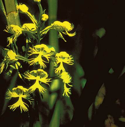 An Eastern prairie fringed orchid (Plantanthera leucophaea), a type of monocot.