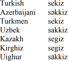eight in Turkic languages