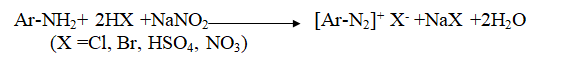لقد اكتشف عالم الكيمياء بيتر كريس Peter Criess في سنة (1858) أن الأمينات الأروماتية الأولية تتفاعل بسرعة مع حامض النتروز (HONO) في درجات الحرارة الواطئة (0-5C) معطية أملاح سهلة الذوبان في الماء أطلق عليها أسم أملاح الديازونيوم (Diazonium salts)