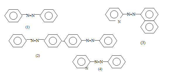 - مركبات الآزو الأحادية :- وهي التي تحتوي على مجموعتي أميل ترتبط ببعضها بواسطة مجموعة الآزو وتسمى Mono azo كما في (1) .