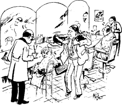 He took Philip there the next day, and first the barber cut Mr. Lloyd's hair. Then he put Philip in the chair and said, 'How do you want your hair, young man?'