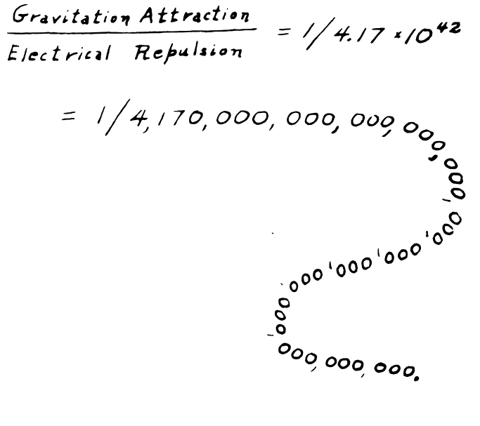 Fig. 7–14. The relative strengths of electrical and gravitational interactions between two electrons.