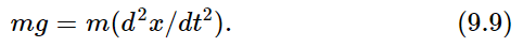 Cancelling the m’s, we find that the acceleration in the x–direction is constant and equal to g. This is of course the well known law of free fall under gravity, which leads to the equations