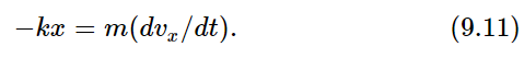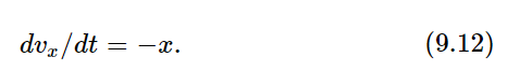 Here we have a situation where the velocity in the x–direction changes at a rate proportional to x. Nothing will be gained by retaining numerous constants, so we shall imagine either that the scale of time has changed or that there is an accident in the units, so that we happen to have k/m=1. Thus we shall try to solve the equation