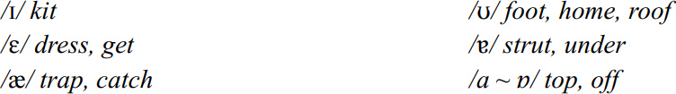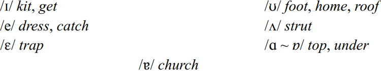My own observations of speakers this century suggest that earlier forms of East Anglian English had a checked vowel system consisting of seven vowels. The additional vocalic item, which I represent as