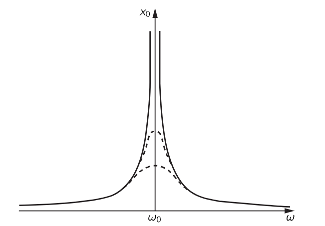 Fig. 25–5. Resonance curves with various amounts of friction present.