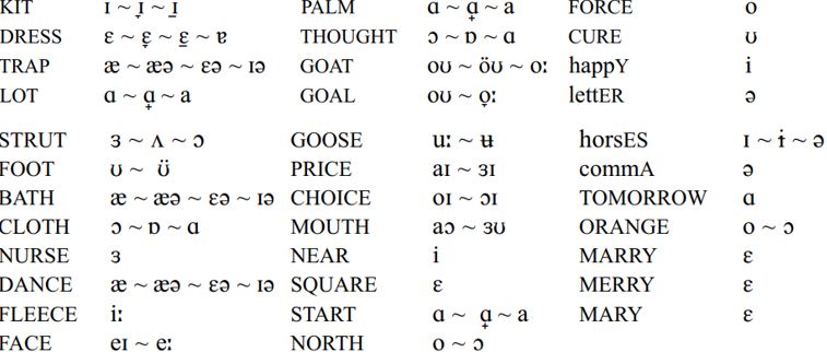 The most significant vocalic features of the Inland North are those patterns of variation associated with the Northern Cities Shift. This phenomenon affects the KIT, DRESS, TRAP/BATH/DANCE, LOT/PALM, STRUT, and CLOTH/THOUGHT classes. Considered here are other characteristics of the Northern vowels.