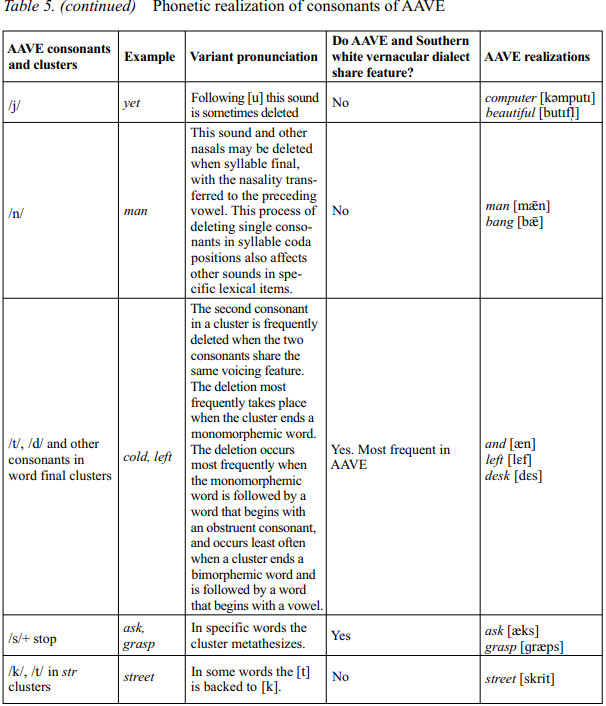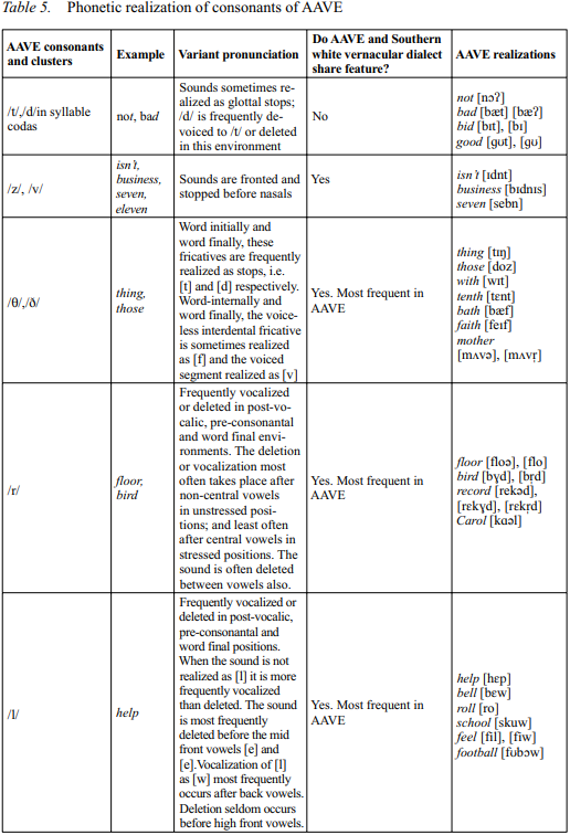 The entries on Table 5 give examples of some distinctive AAVE consonantal allophones