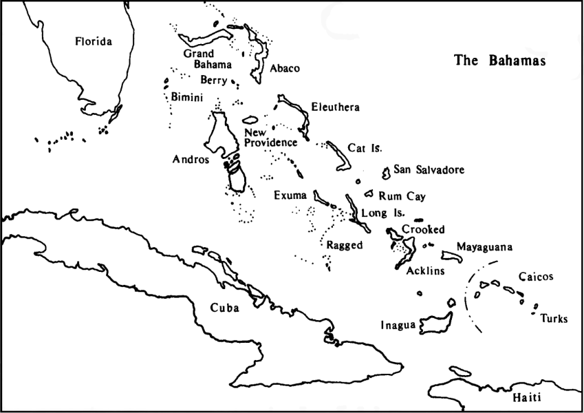 The Commonwealth of The Bahamas (henceforth The Bahamas) represents a unique geographic, demographic, and linguistic situation among the islands of the Caribbean and North Atlantic. The Bahamas consist of more than 700 islands and over 5,000 square miles of land mass, ranging from Grand Bahama to the north, located 60 miles off of the Florida coast, to Inagua to the south, located approximately 50 miles from Cuba and Haiti. The 30 inhabited islands contain almost 300,000 permanent residents, two-thirds of whom now live in the urban area of Nassau. The map in Figure 1 outlines The Bahamas in relation to the United States, Cuba, and Haiti.