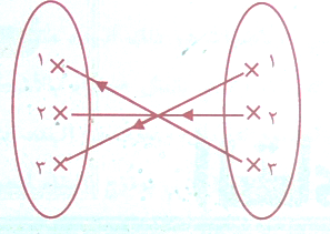 تباديل جمع تبديل والتبديل بلغة الاقترانات هو اقتران واحد لواحد من مجموعة إلى نفسها كما في الشكل .