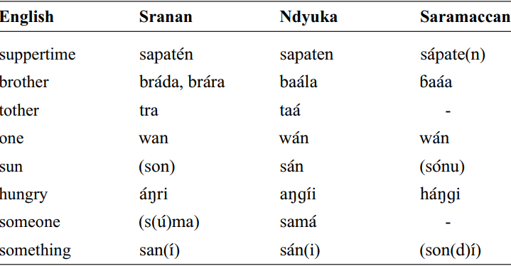 The causation of this /a/-variant is not obvious. Possibly this is supportive of the hypothetical Proto-Suriname-Creole vowel phoneme /*Λ/ referred to above.