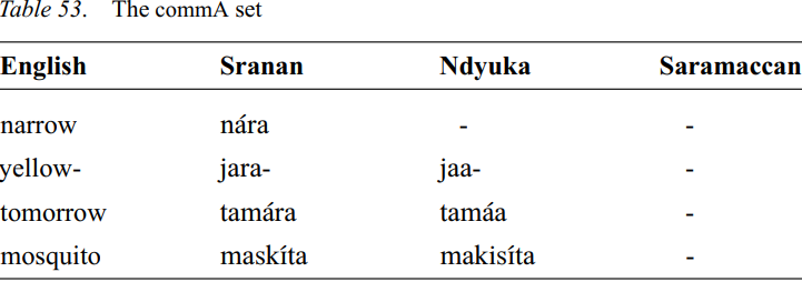 The commA set in the Suriname creoles largely comprises words ending in -o(w) in Standard English. In substandard accents this frequently becomes /-ə/.