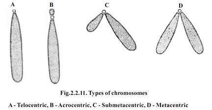 The shape of the chromosome changes from phase to phase. Each chromosome has a clear zone, known as centromere or kinetocore along their length. The centromere divides the chromosome into two parts. Each part is called the chromosome arm. Thus according to the position of the centromere and nature of the chromosome arm, the chromosomes may be Telocentric, Acrocentric, Submetacentric and Metacentric.