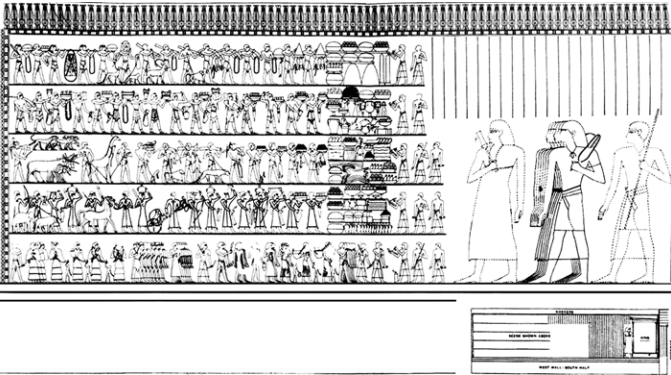 شكل 10: منظر استقبال «رخ مي رع» وفود الأقطار الأجنبية حاملين جزية بلادهم للفرعون.
