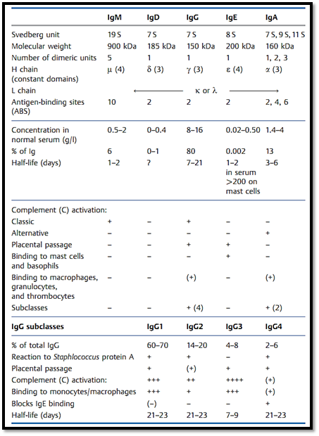 Table 1 Characteristics of the Various Immunoglobulin Classes