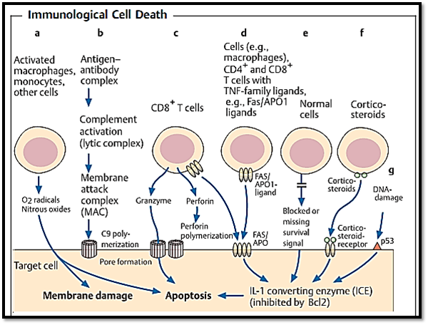 Fig. 2 summarizes the mechanisms of cell death resulting from immunological cell interactions and differentiation processes, as they are understood to date.