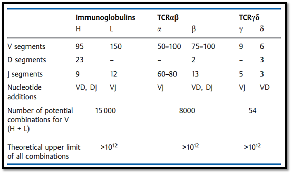 Table 1 Organization of the Genetic Regions for the Human Immunoglobulins and T-Cell Receptor s (TCR)