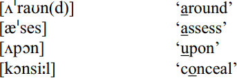 In the above set the vowel that is reduced to schwa in RP is underlined.