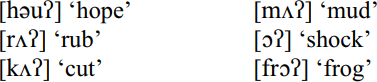 Final stops are frequently replaced by glottal stops, especially in lower sociolects (sometimes referred to as patois or broken English):