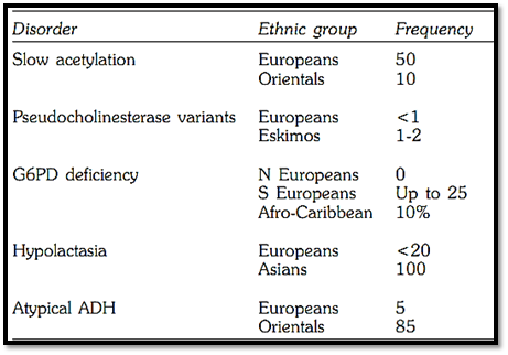 Table 1: Ethnic variation in some pharmacogenetic disorders