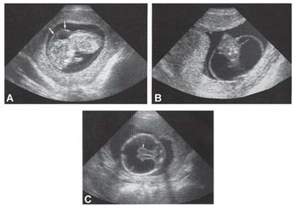 Trisomies in the clinically recognized syndromes can also present as mosaicism, and the risk to the fetus is high. Pseudomosaicism has been demonstrated in trisomy 13, 18 and mosaic trisomies of chromosomes 7, 8, 9, 13, 18, 21. Follow up by amniocentesis or fetal blood sampling is recommended in such cases (Figs 8A to E).
