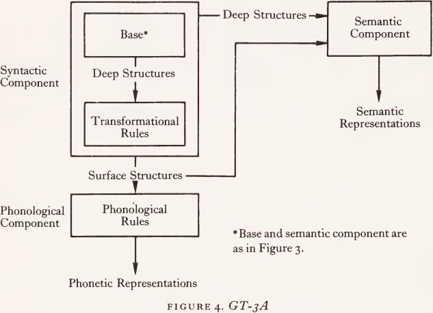 The ultimate historical source of this divergence seems to lie in the rejection of a broad definition of meaning by Chomsky in Syntactic Structures leading to the incorporation of a narrowly defined semantic component by Katz and Fodor. As the change from structuralism to GT-1 was encouraged by a concern with syntax so the changes described here have followed from an interest in meaning.