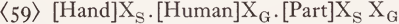 An example of unalienable possession would be ‘hand’, whose lexical reading is given in (59) with ‘Hand’ as an abbreviation for a rather complex set of semantic features: