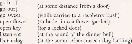 In none of these utterances is the relation the same, with the exception of ‘ go in ’ and ‘ go out ’ - which unlike the others could be imitations. In ‘ open flower ’, for instance, the relation is movement toward something, whereas in ‘ open key ’ the relation is one of instrumentality. It is possible that Washoe actually draws such distinctions, in which event we should conclude that she is far in advance of children at a comparable length of utterance, but it is more probable that Washoe does not organize words into grammatical relations at all. She produces instead whatever signs are appropriate to her situation when she happens to know them, but successive signs are independent of each other. It is consistent with this interpretation that she does not produce signs in fixed order. She can, as Gardner and Gardner supposed, acquire words and she is not limited to uttering a single word at a time. But as far as these few examples reveal she cannot organize meanings in the particular ways routinely and universally available to children.