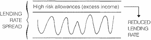 If the risk allowances provided in the lending rate spread turn out to be too high, the Bank's income will be returned to borrowers as a group through a reduction in the lending rate in subsequent periods. Thus, fixed rate lending would involve extra costs for borrowers as a group only if the Bank were systematically to overestimate risks and thereby earn "excess" income more or less permanently This possibility seems remote.