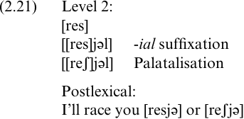 Finally, rules may apply both lexically and postlexically: for instance, Palatalization in English (2.21) must, for reasons of ordering and interaction with the morphology, apply on Level 2 of the lexicon, but it also operates between words.