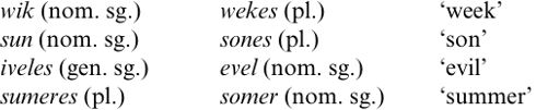 Neither of these environmental refinements, however, addresses the problem of `the qualitative difference between the original short vowels and their lengthened reflexes' (Minkova 1982: 29). Two main sources of evidence indicate that MEOSL produced a qualitative as well as a quantitative change for non-low vowels. First, in twelfth and thirteenth century manuscripts, orthographic alternations are found between un inflected and inflected forms of words (see (3)).
