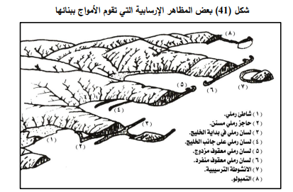 تقوم الأمواج بالترسيب وفقاً لظاهرة الفرز Sorting وفي الأعماق الضحلة القريبة من الساحل تبعاً لذلك يتطور مجموعة من المظاهر الإرسابية وكالآتي:
