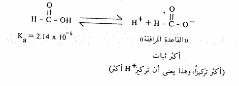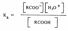 ثابت الحموضة : توجد الحموض الكربوكسيلية في حالة اتزان مع أيون الكربوكسيلات (القاعدة المرافقة) وأيون الهيدروجين البروتون في المحاليل المائية.