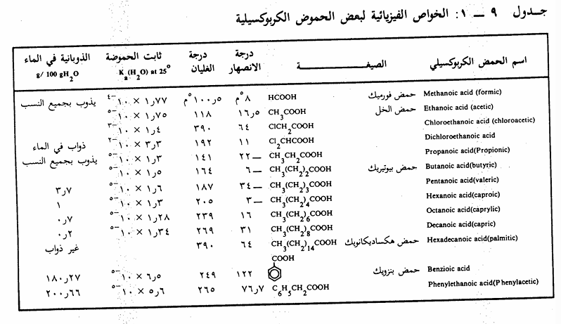 الخواص الفيزيائية للحموض الكربوكسيلية